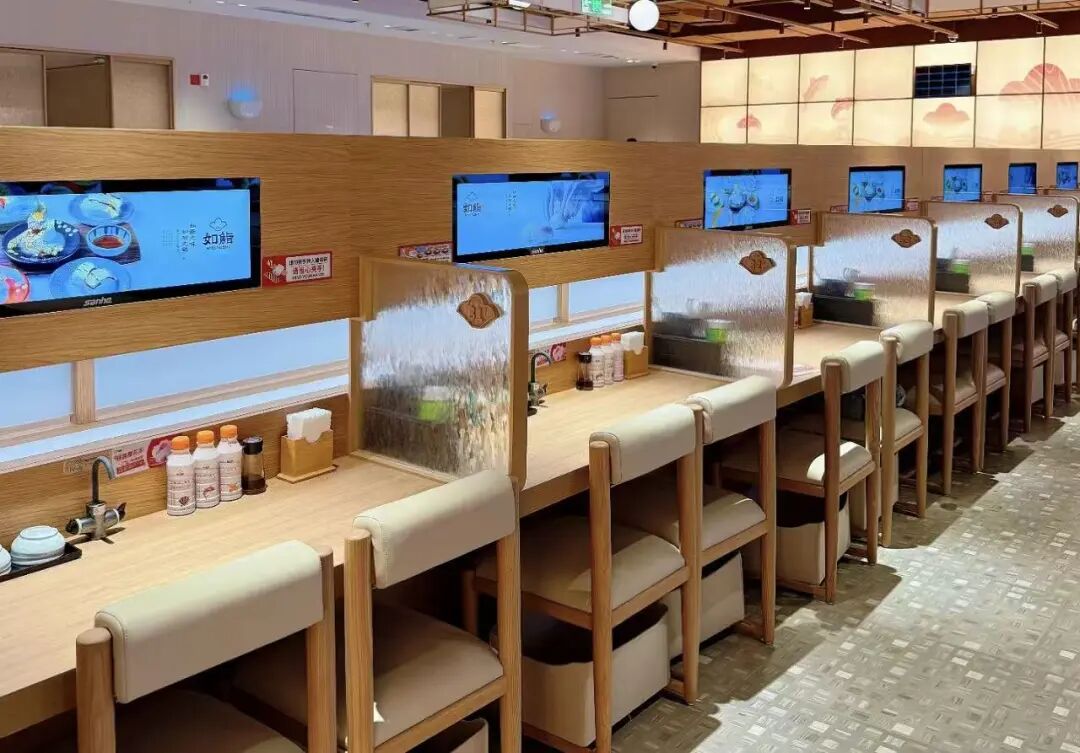 为兼顾一人和两人用餐,店内除了常规的4-6人桌外,还配备了“一人友好型”座位和双人卡座,且卡座间均采用格挡式设计,让用餐环境更私密。