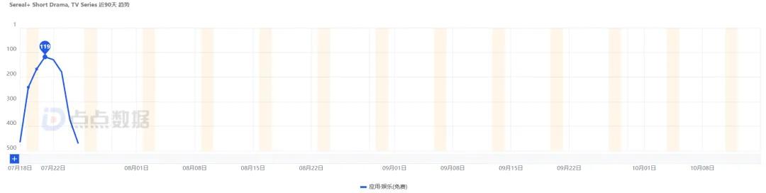 同时,Sereal+在美国地区App Store免费娱乐应用榜由此前高点的第119名,至7月25日便跌至第470名,之后跌出前500名。