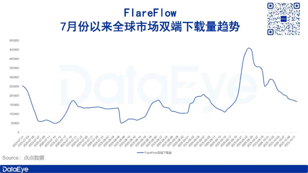 在具体投放、下载量数据上,FlareFlow也呈现上涨趋势。