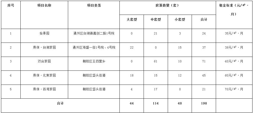 东城区此次配租的公租房房源共198套,其中,大套型44套、中套型114套、小套型40套。