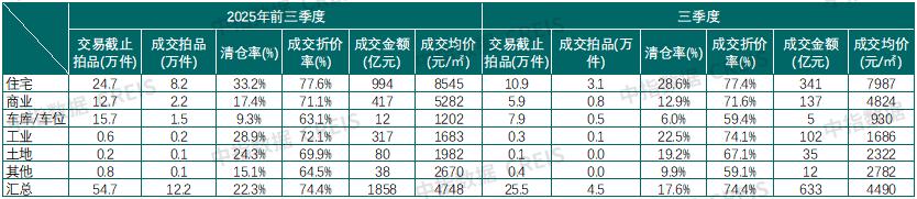小结:2025年前三季度,全国法拍市场呈现量价齐跌的总体特征,市场分化特征显著;整体而言,法拍市场热度与区域经济、资产流动性紧密相关。