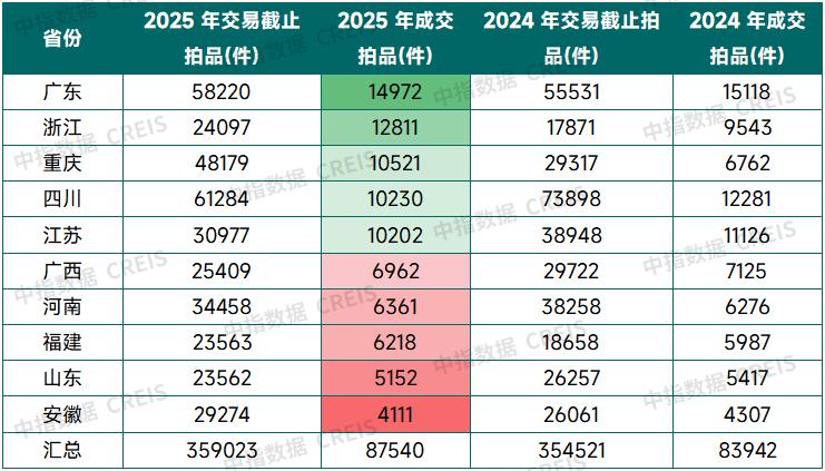 图:2024、2025年前三季度各省法拍房挂拍成交