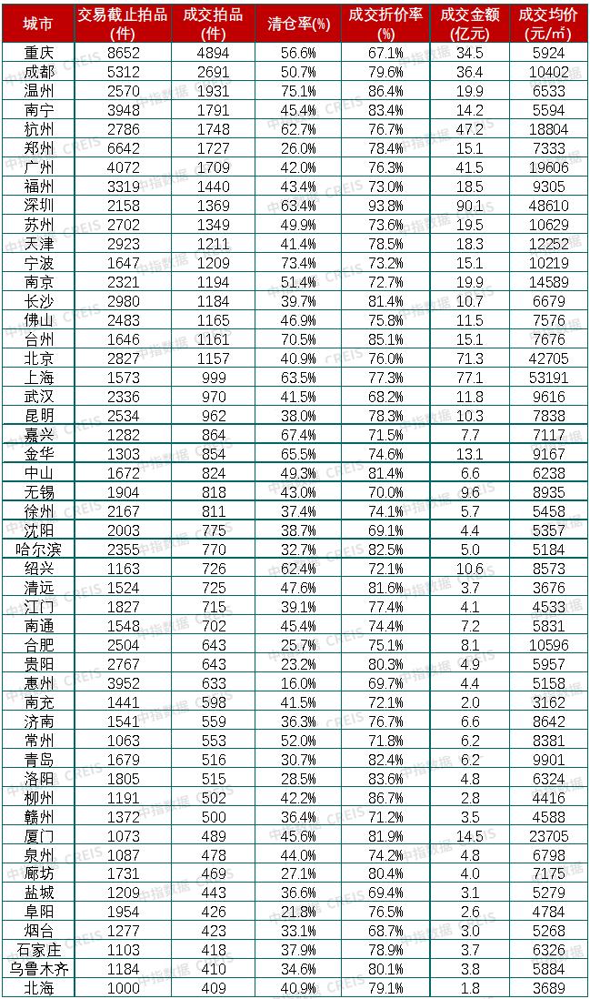 法拍住宅成交均价下降,成交房源集中在沿海地区