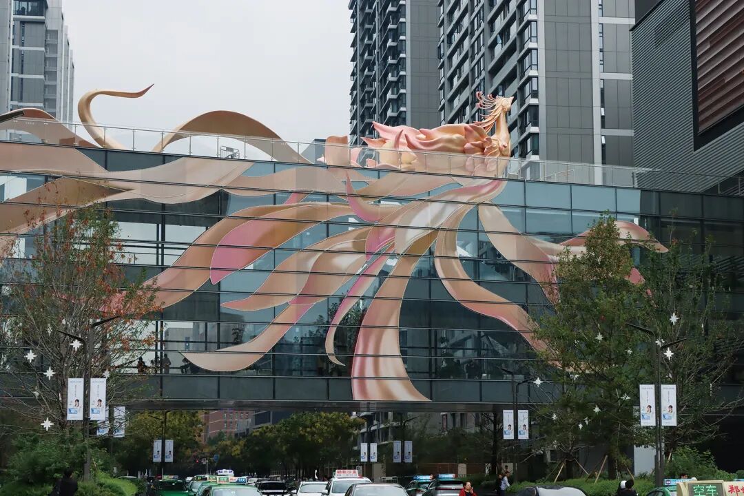 钟情文化的艺术爱好者,可能更乐意去康宁街的海汇美术馆,花上半天时间用艺术唤醒自己内心深处对生活的好奇;而不远处的郑东万象城,今年夏天刚开业,其中庭最吸引人的便是这一款艺术装置—— 《诗经》同款的玄鸟。在郑东万象城五楼,我找到了一家门面不大的脱口秀剧场。尽管离开演时间尚早,但空中走廊里,已经聚集了等候入场享受精神食粮的年轻人。