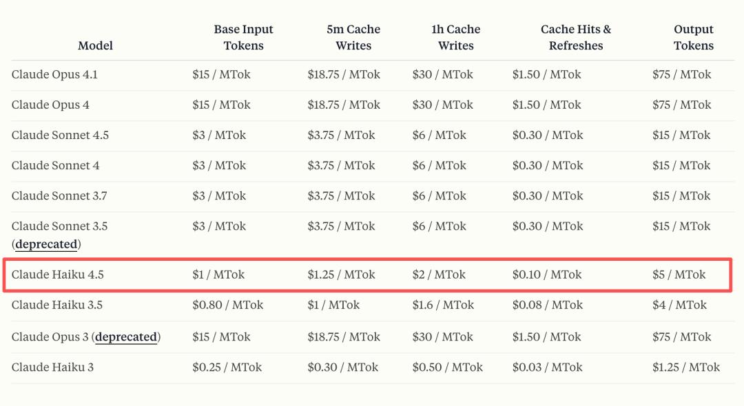 目前,Claude Haiku 4.5可供Anthropic的免费用户使用,开发者现在可以通过Claude API使用claude-haiku-4-5,定价为每百万输入和输出token 1美元(折合人民币约7元)和5美元元(折合人民币约35元)。