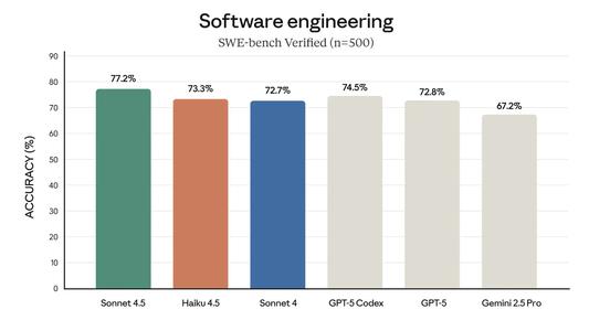 在衡量AI系统软件编程能力的测试集SWE-bench Verified上,Claude Haiku 4.5表现与Claude Sonnet 4和OpenA GPT-5类似。