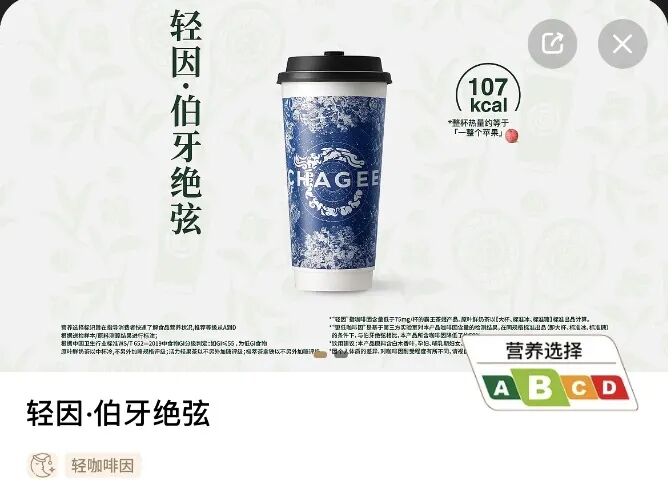 早在2023年,霸王茶姬就实现了茶底0添加香精、牛乳0奶精、整杯0反式脂肪酸。2024年,品牌又推出ABCD营养分级体系,根据饮料中的糖、脂肪等含量,将产品从“A”到“D”分成四个等级——消费者拿到菜单的那一刻,几乎像在看一张“健康成绩单”。