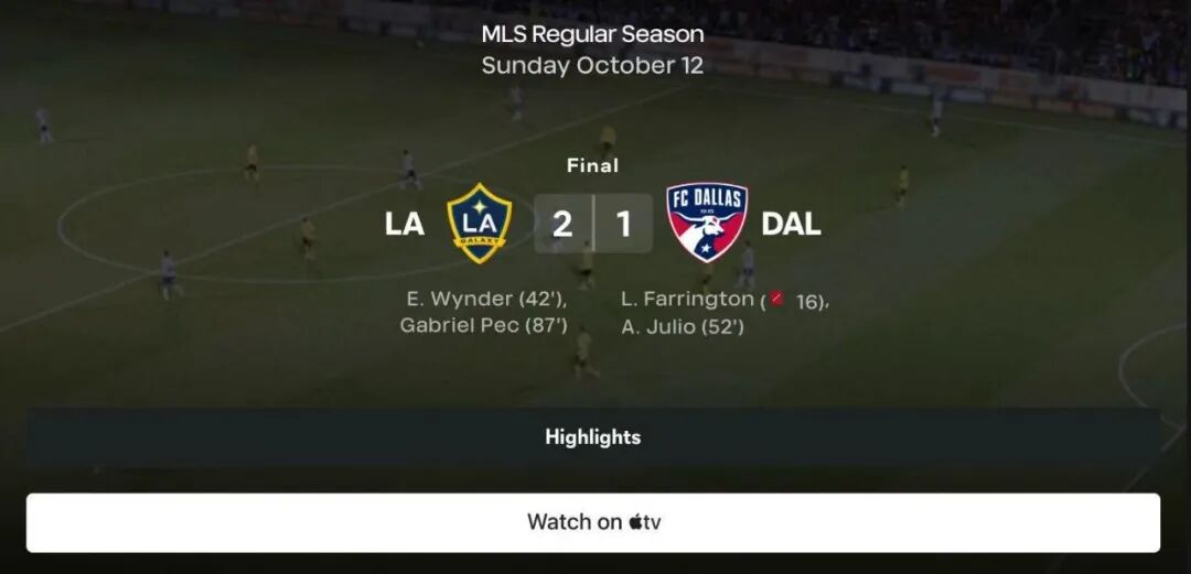 洛杉矶银河对FC达拉斯战报已被撤下 图源:MLS官网截图