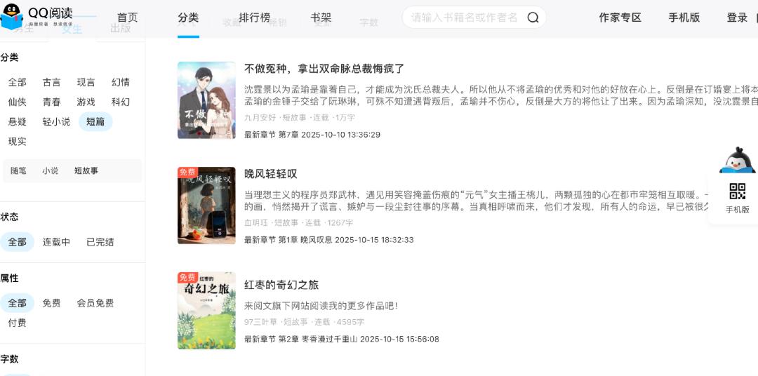 最核心的还是用户体验上的需求。当下用户的阅读习惯早已改变,很少有人能静下心来读一部几十万字、甚至百万字的小说,但又需要“即时性的内容满足”,短故事2000到5万字的篇幅,刚好能快速地引人入胜,开篇即入题,没有冗长铺垫,像悬疑故事开头就抛疑点、甜宠故事快速拉满情绪,这种“不拖沓”的体验,契合了用户对“短平快”内容的需求。