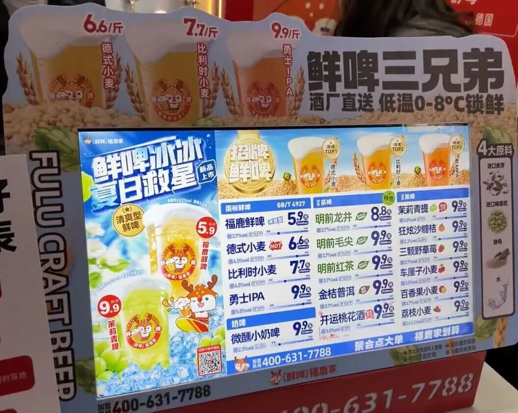 蜜雪同样选择去卡“鲜啤”这一心智。就像曾在奶茶、咖啡赛道做过的事情,蜜雪最擅长的,就是把已有模式的效率做到极致。蜜雪把福鹿家正式纳入体内,它面临的挑战跟“鲜啤30公里”是类似的。