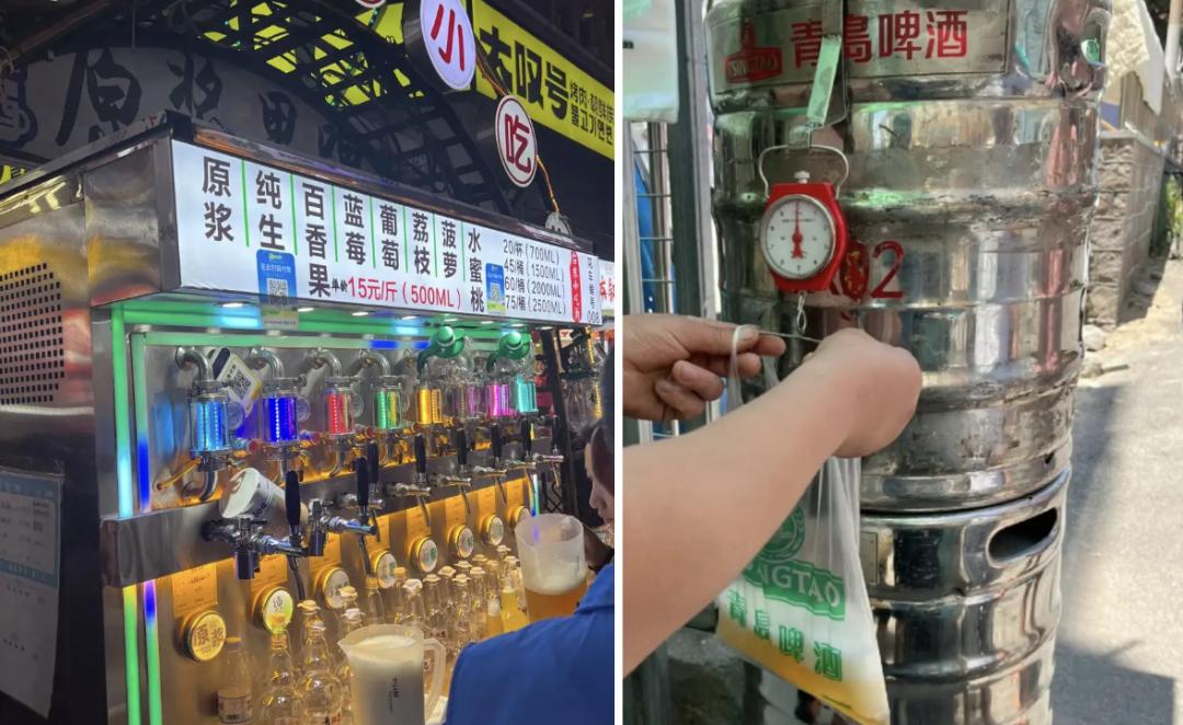 为了突出现制,福鹿家也和奶茶店一样,把接酒开关放到消费可以看到的位置,当面把啤酒接到杯子或是袋子里。