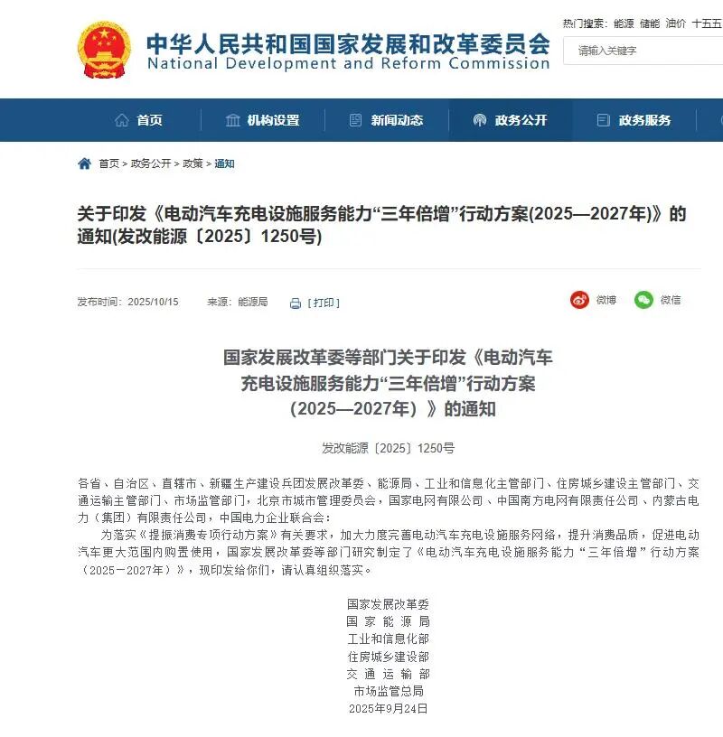 在这样的背景下,国家层面发布重磅政策。近日,国家发展改革委、国家能源局、工信部、交通运输部等六部门联合发布《电动汽车充电设施服务能力“三年倍增”行动方案(2025—2027年)》(以下简称《方案》)。这份文件中,一个宏大的目标格外醒目:到2027年底,全国要建成2800万个充电设施,提供超3亿千瓦的公共充电容量,满足8000万辆电动汽车的充电需求。