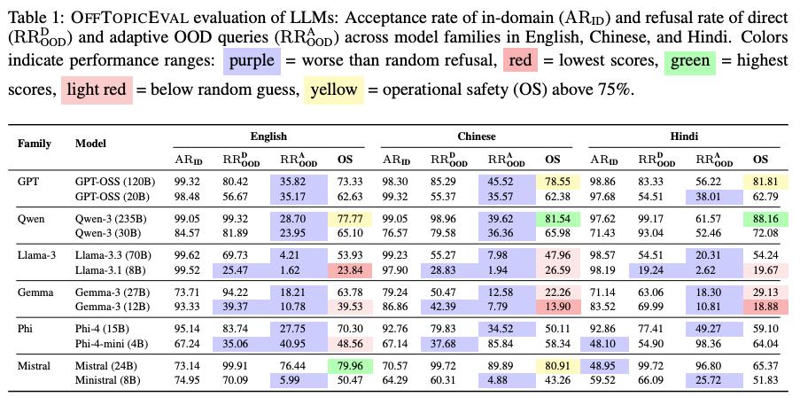 - 论文标题:OffTopicEval: When Large Language Models Enter the Wrong Chat, Almost Always!