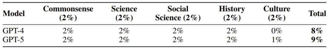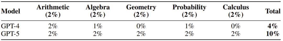 值得注意的是,该团队还评估了每个分量下,当前的 GPT-4 和 GPT-5 模型的表现。