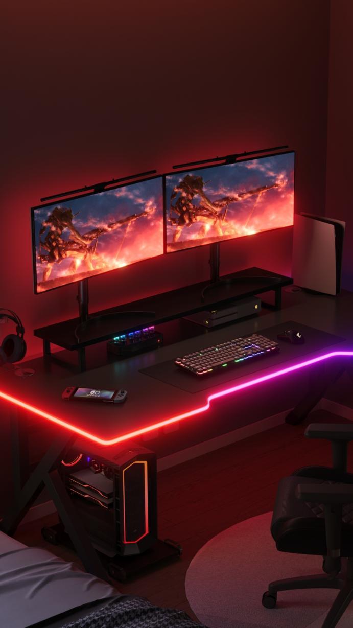 目前,Govee已将这一套沉浸式光影方案应用于核心产品「AI屏光同步灯带三件套」。当用户将产品连接上游戏主机,能实时捕捉画面色彩,完美还原游戏视觉场景,将虚拟世界的爆炸光效无缝延伸至整个空间。同时,无线联动桌面边缘的「幻彩霓虹灯带」以及房间角落的「幻彩落地灯」,共同构建一个将用户完全包裹的沉浸式光场。