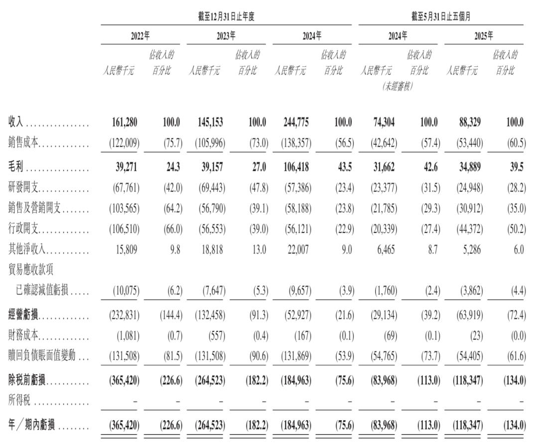 从2022年至2024年,云迹科技分别亏损了3.65亿元、2.65亿元、1.85亿元,亏损额有所收窄。但2025年前五个月,其总亏损达到1.19亿元,同比扩大41%。