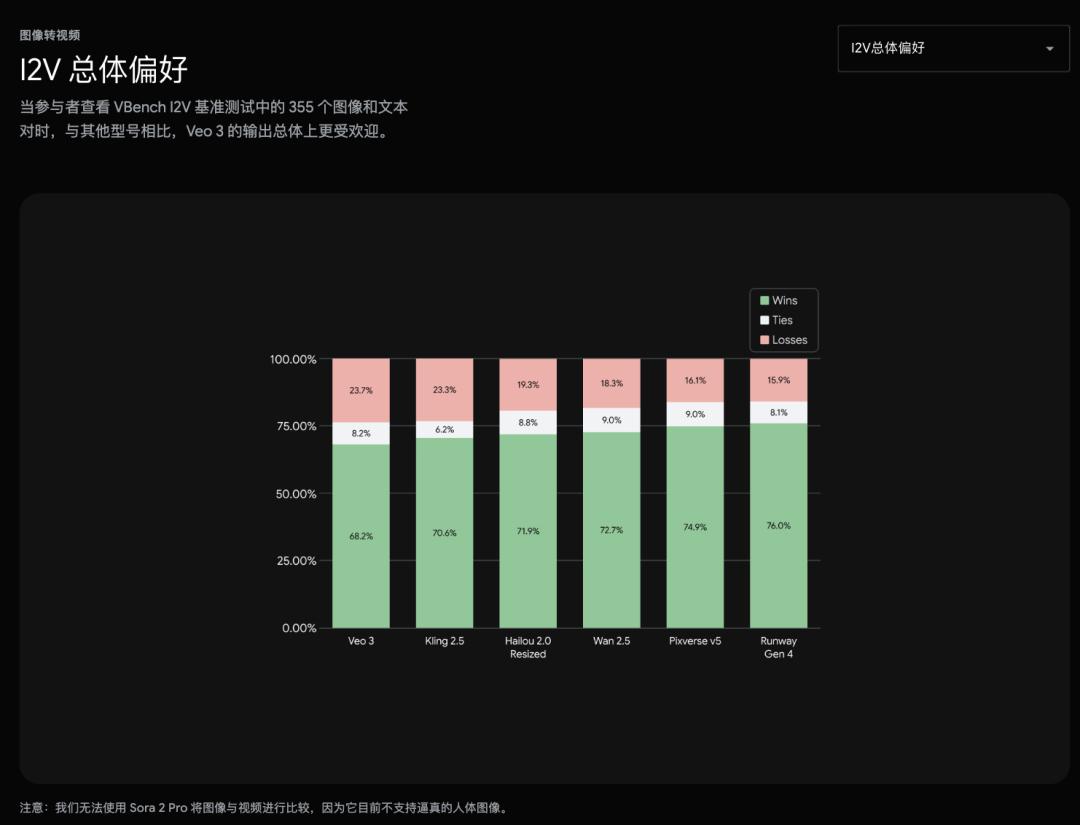 有意思的是,谷歌官网还悄悄地「暗踩」OpenAI 所发布的 Sora 2,解释在图像转视频测试中没有 Sora 2 Pro 的原因是因为 Sora 2 Pro 目前不支持人像生成。