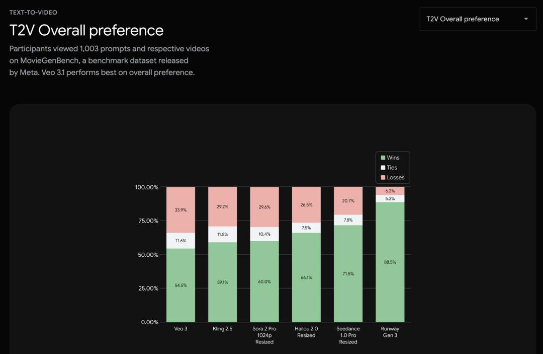 官网还强调,在音画一致性方面,Veo 3 的「视频素材」功能在内部基准测试中,在「整体偏好」和「视觉质量」两项指标均名列前茅。