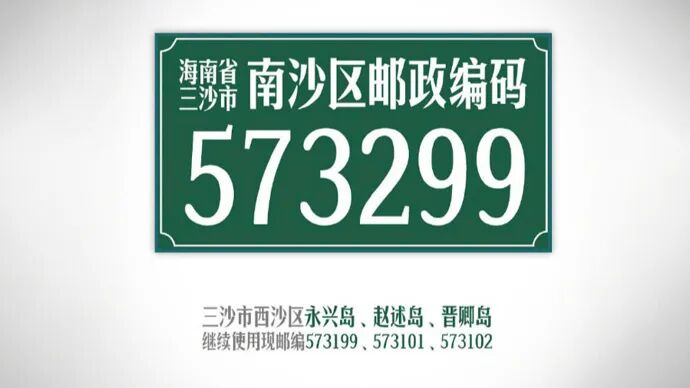 就在2024年,国家邮政局发布公告,给海南省三沙市南沙区赋予邮政编码:573299。
