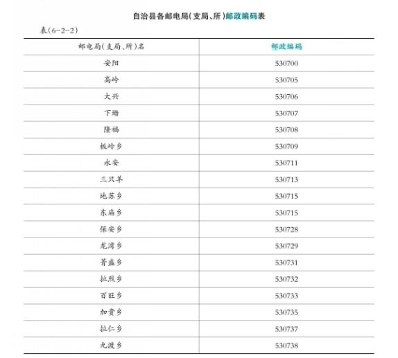 我国邮政编码一直采用“四级六码制”结构,也就是编码由6位阿拉伯数字组成,分别代表省、邮区、市局及投递局四个级别。