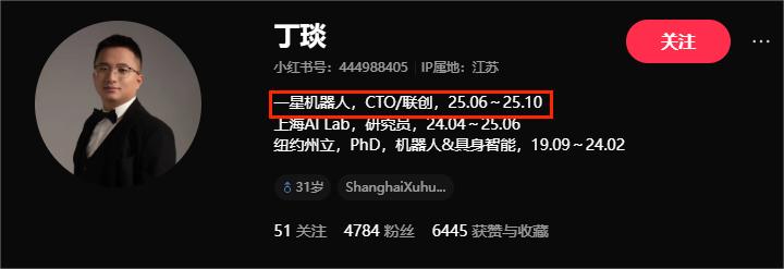 CTO的小红书账号简介也已经将这段工作经历,标注结束在2025年10月。