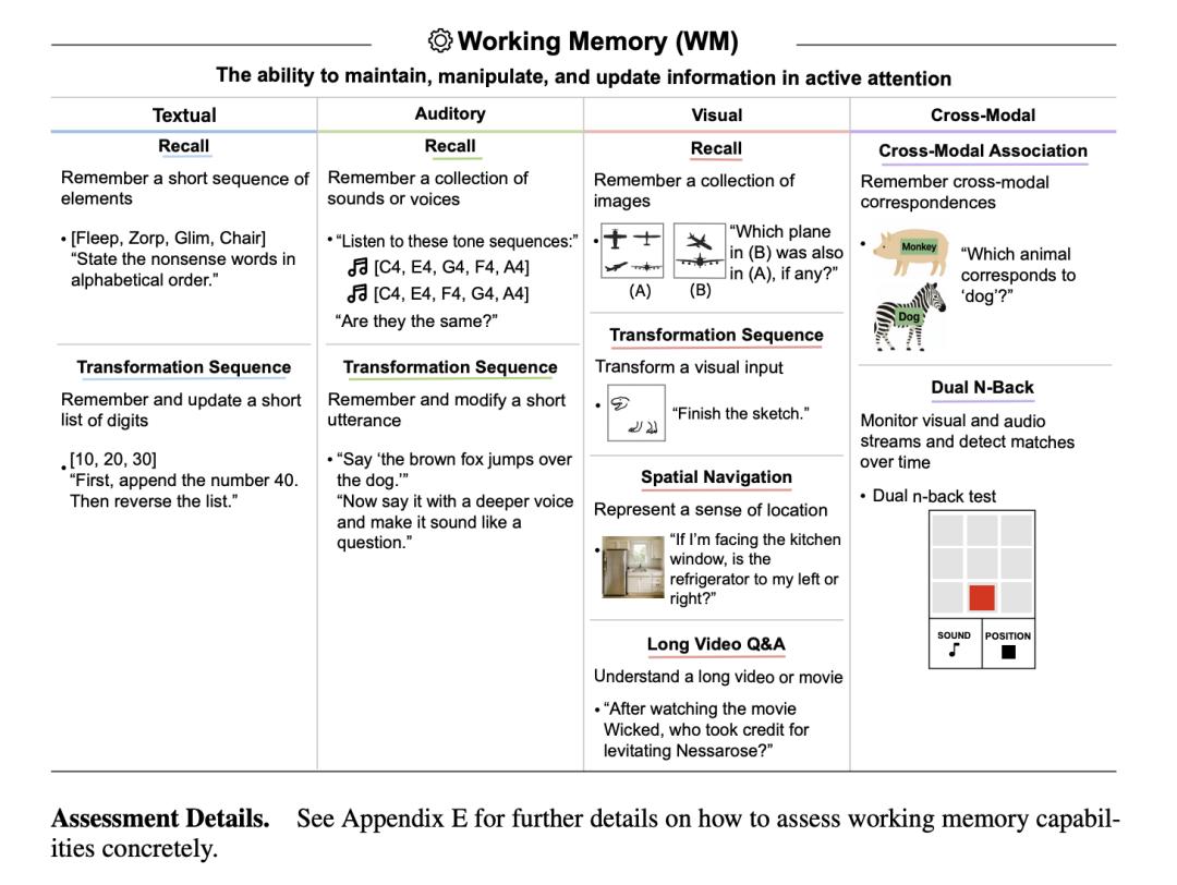 工作记忆 (WM): 在注意力中主动保持、处理和更新信息的能力(即短期记忆)。