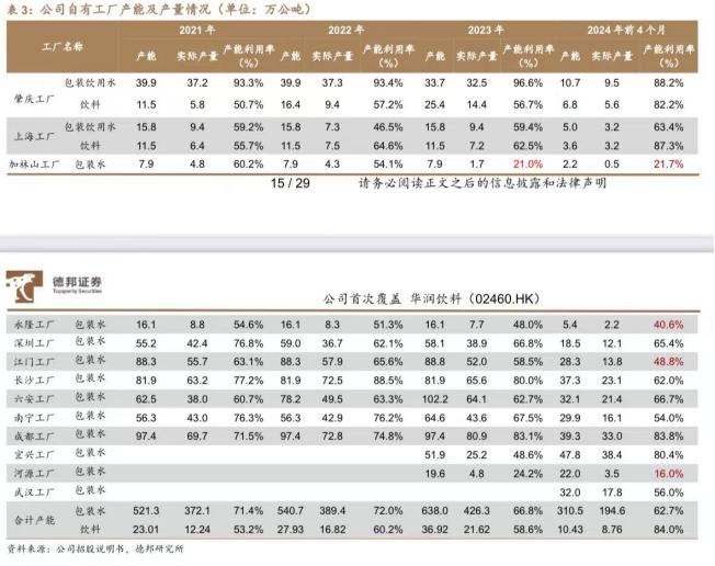 这一落地节奏,与华润饮料2024年9月披露的招股书中的规划高度吻合。2023年,华润饮料自产包装饮用水年产能为638万吨,若后续规划均顺利落地,其新建四大工厂及拓建项目将合计新增包装饮用水年产能661万吨,且这些产线均计划在2024年下半年至2025年底完成全部生产线投产。