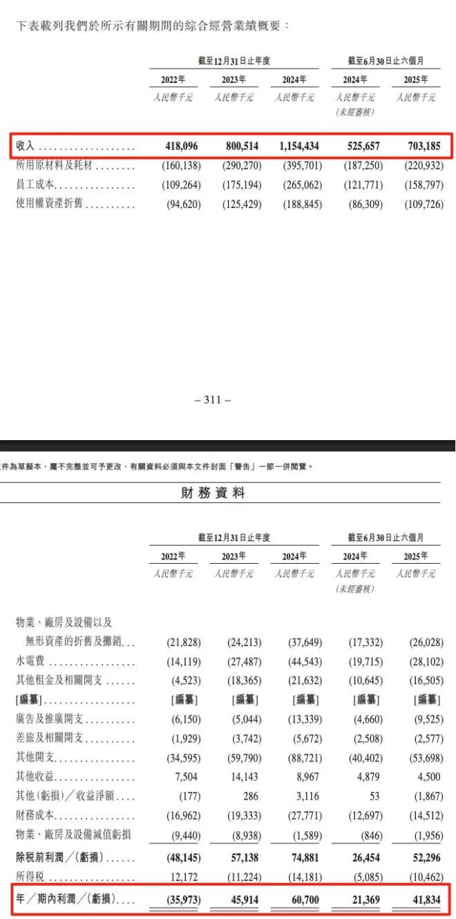 根据最新招股书,2025年上半年遇见小面实现营收7.03亿元,同比增长33.8%;;经调整净利润5217.5万元,同比增长131.56%;年内利润为4183.4万元,据计算净利同比增95.77%。