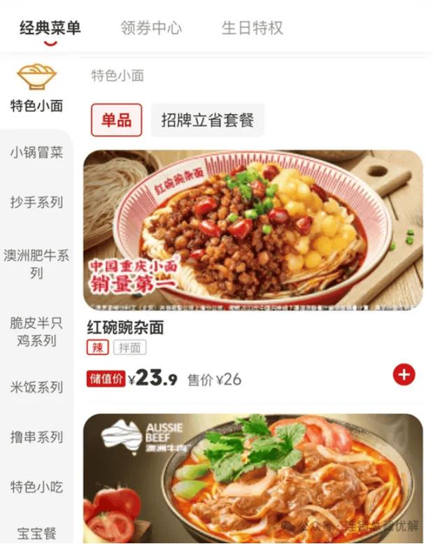 通过“重庆小面+特色小吃+饮品”的套餐化组合,遇见小面巧妙地将单点需求转化为套餐消费,既提升了出餐效率,又有效拉动了客单价增长。