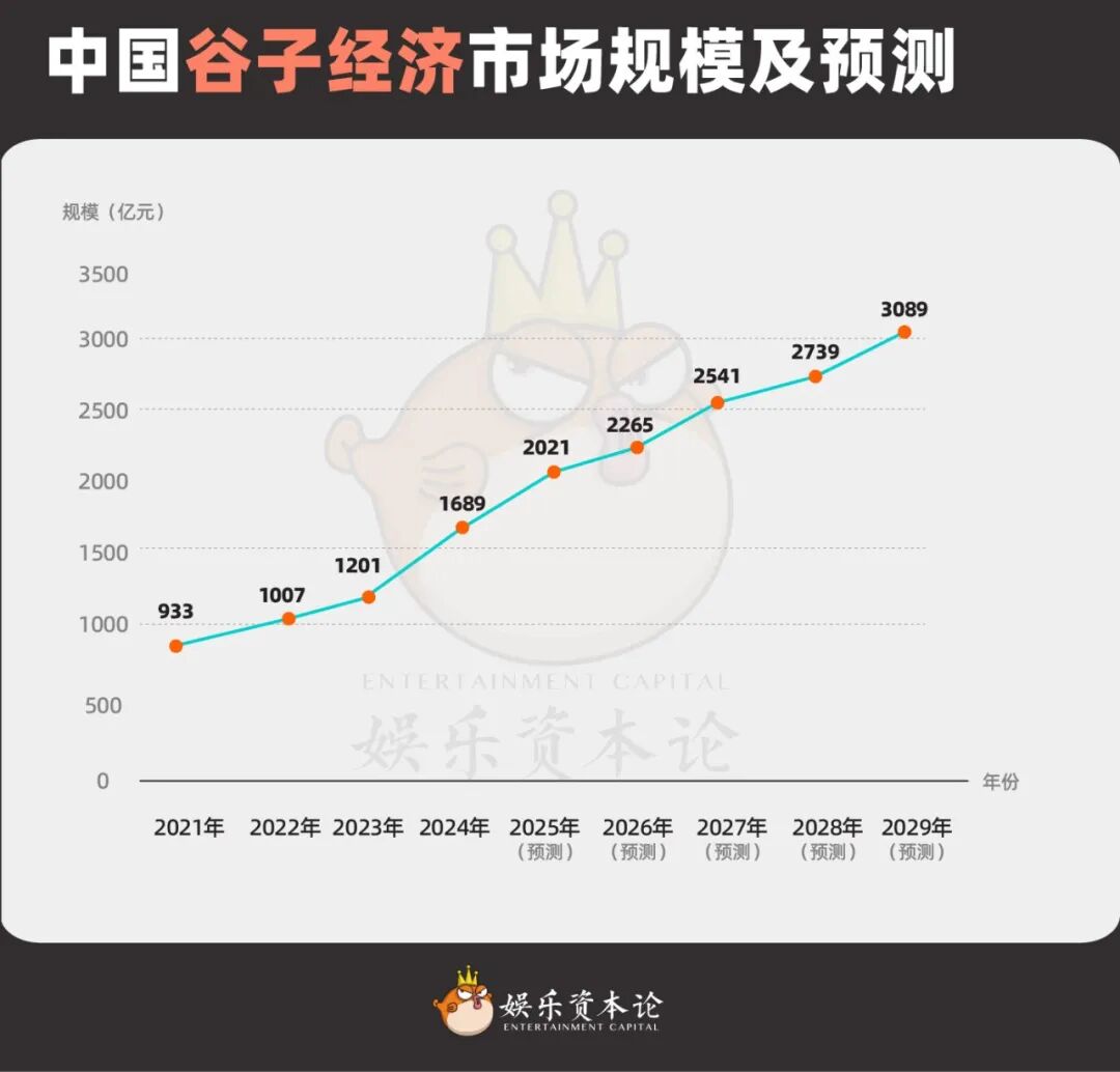 数据显示,2025年对于与二游高度关联的谷子经济而言,是高歌猛进的一年:《2024—2025年中国谷子经济市场分析报告》显示,2024年中国“谷子经济”市场规模达1689亿元人民币,预计2029年超过3000亿元。