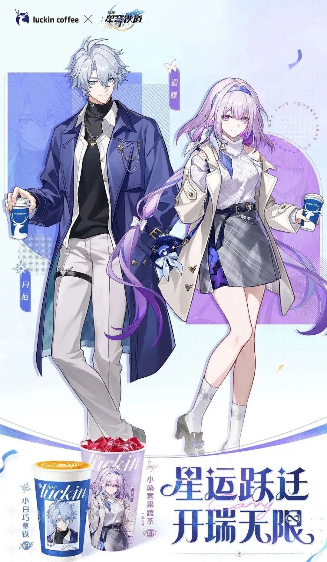 还有瑞幸与《崩坏:星穹铁道》的联动,联动角色为3.0翁法罗斯大版本中,12黄金裔中的两位:遐蝶和白厄。