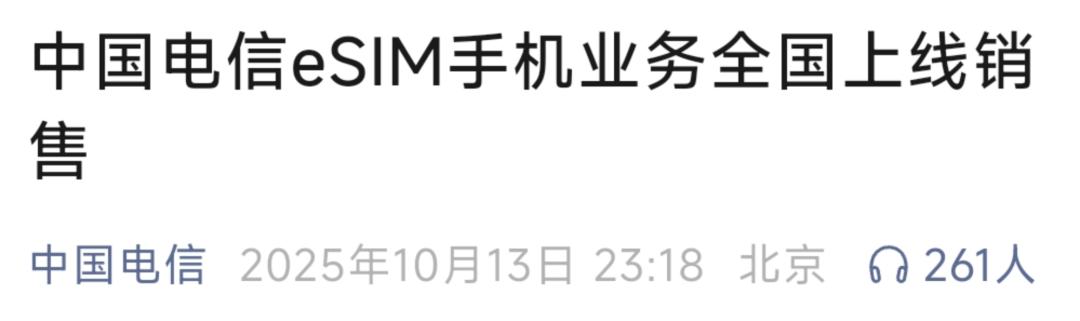 然而终于在今天,千呼万唤始出来,国内三大运营商终于宣布 eSIM 手机业务在全国范围内正式开搞。