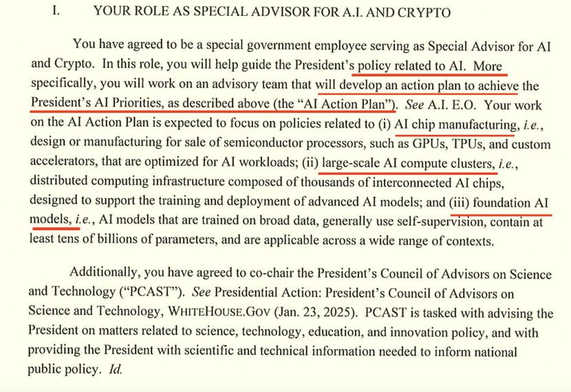 David Sacks在AI领域的权责(来源:美国白宫网站)