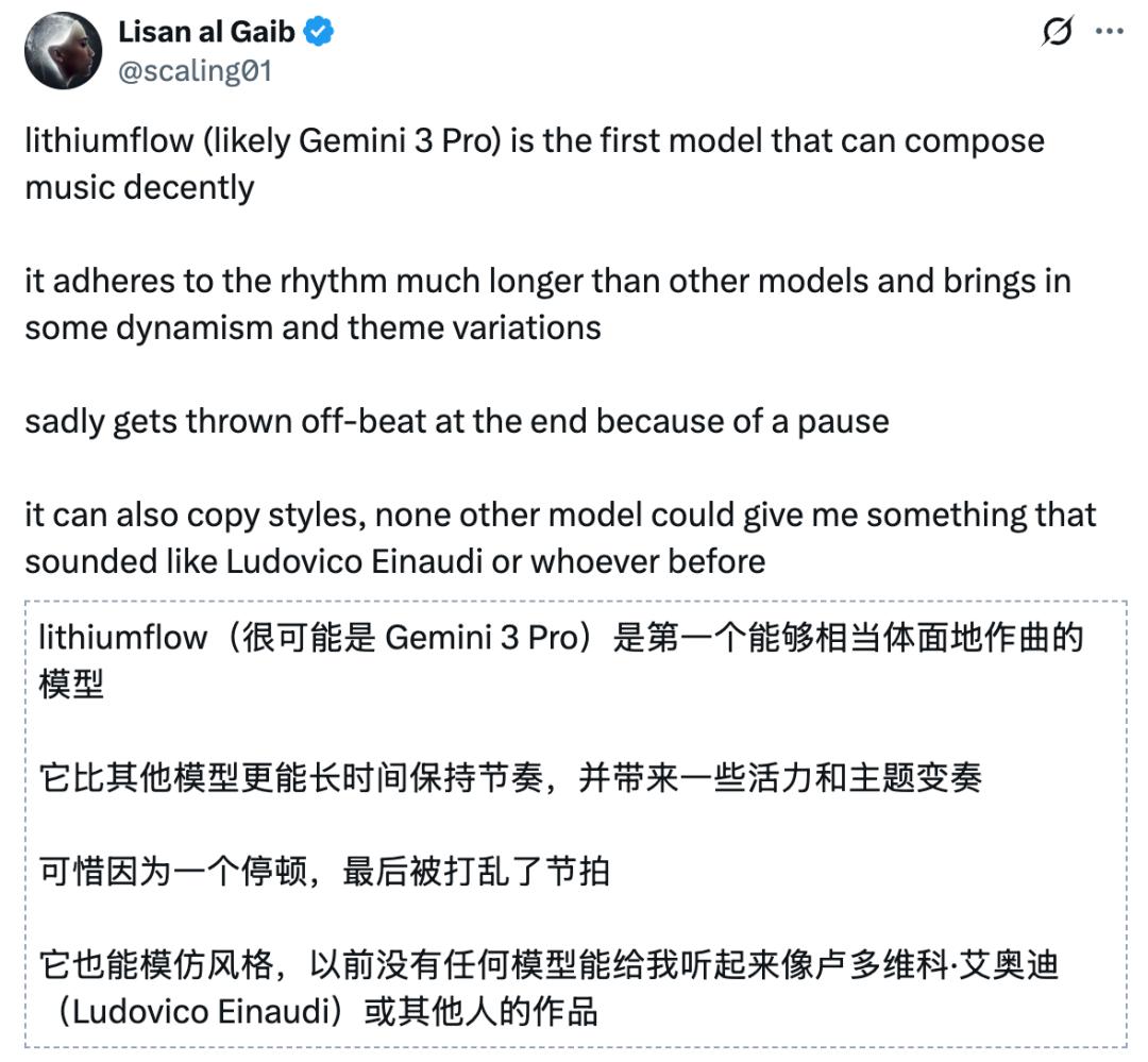 另外一个大更新就是Gemini 3 Pro可以作曲了。