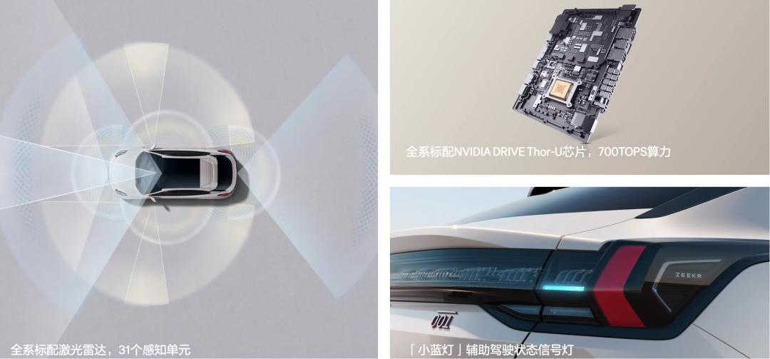 最大的升级给了智能化,智能辅助驾驶芯片从英伟达Orin变成了Thor,全系标配,算力至少2-3倍提升: