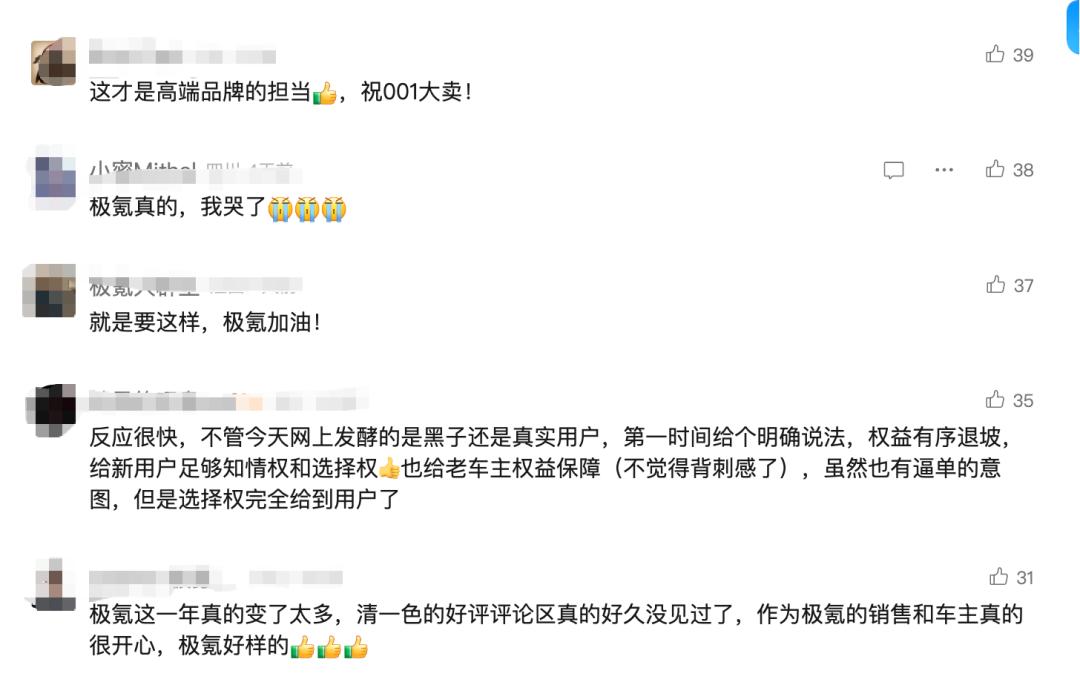尤其是针对部分正在犹豫中的用户,想要更多免费流量时长和三电质保权益,极氪第一时间回复网友,在过渡期内仍为焕新001用户提供终身三电质保及流量权益,赢得了大量点赞。