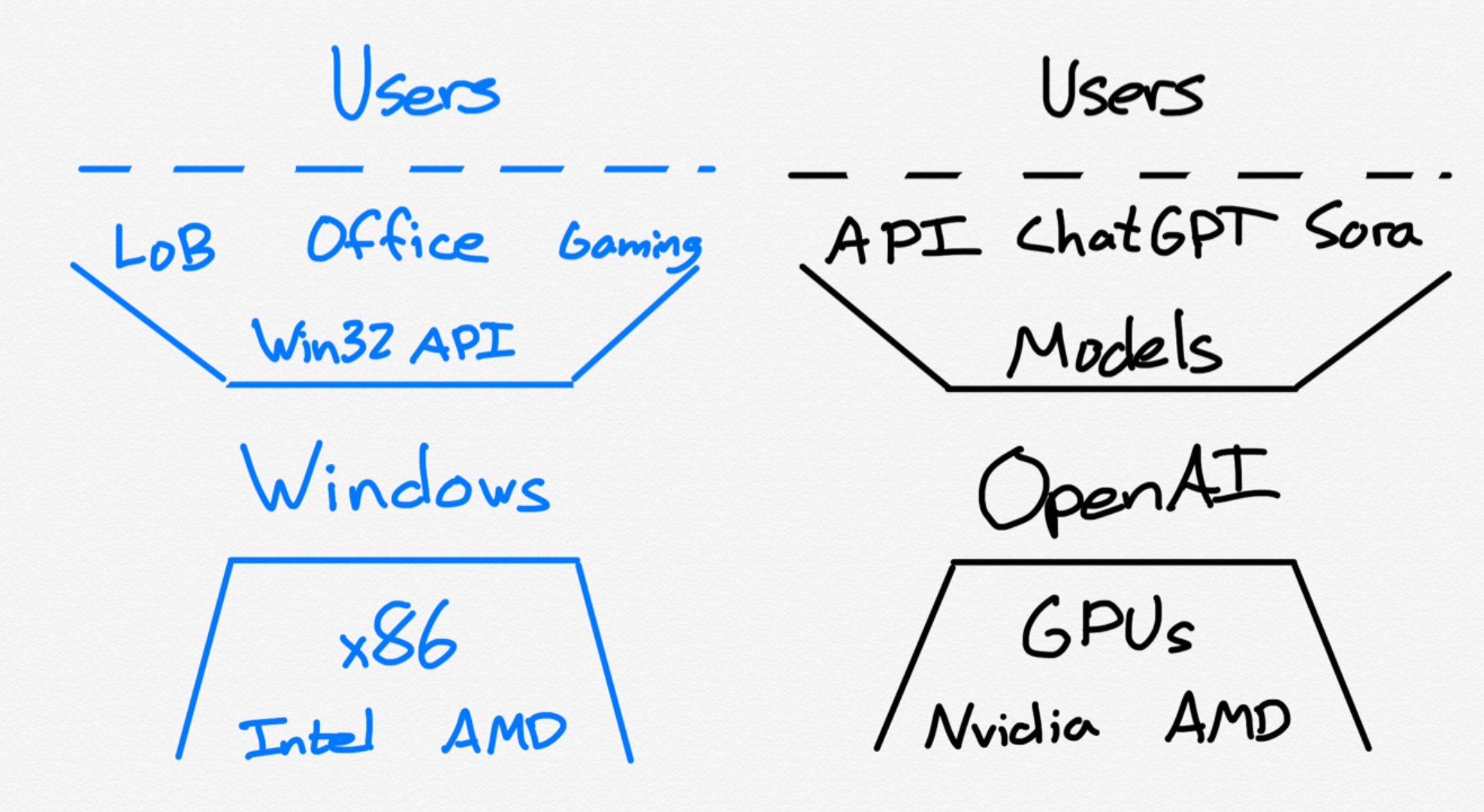 这意味着,如果我们想为“平台的绝对主导地位”寻找一个历史类比——而这似乎正日益成为 OpenAI 的目标——我们就必须进一步追溯到 PC 时代和 Windows。