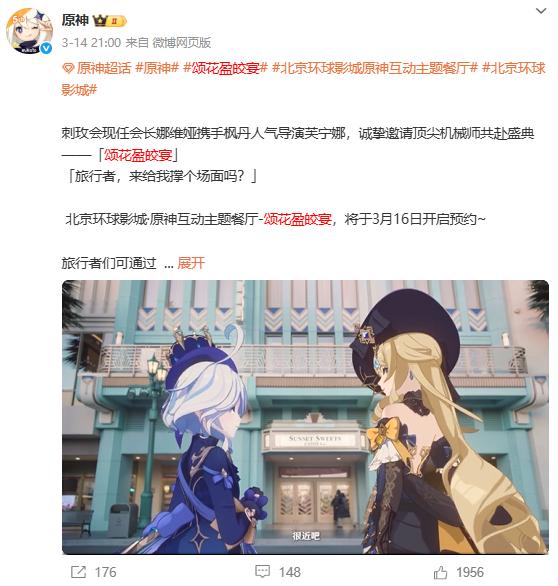 为此,米哈游此前与北京环球影城进行过相关合作,在2025年3月以“颂花盈皎宴”为主题,将《原神》游戏内的经典场景、人气角色融入主题乐园,时间为期3个月。