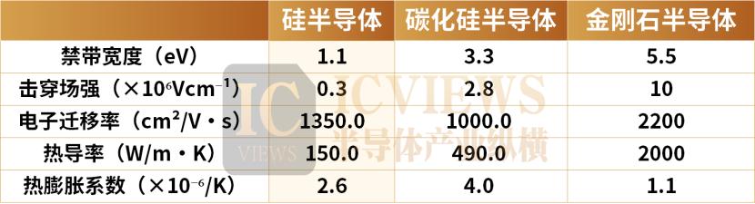 金刚石禁带宽度约为5.5eV,是第四代材料性能最高的材料,被视为“终极半导体材料”,具备优异导热性能,是硅的13倍,适用于高频高功率高温电子器件。
