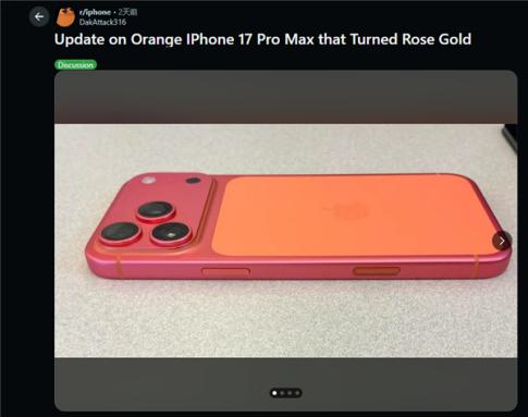 他只用超细纤维布常规清洁手机,从未接触化学试剂或极端环境,但橙色iPhone 17 Pro Max还是变成了玫瑰金。