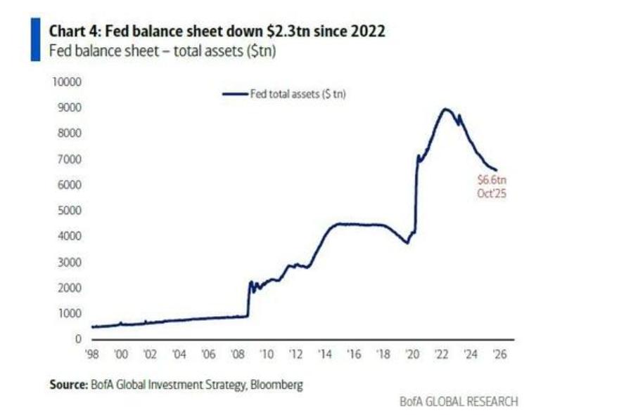 同时,信贷市场已开始出现裂痕(“Krunchy Kredit”)。Hartnett预测,如果银行、券商等关键板块进一步走弱,或高收益债券信用违约互换(HY CDX)利差扩大至400个基点以上,将标志着更深层次的去杠杆化或清算风险,届时美联储将被迫采取更激进的降息行动。