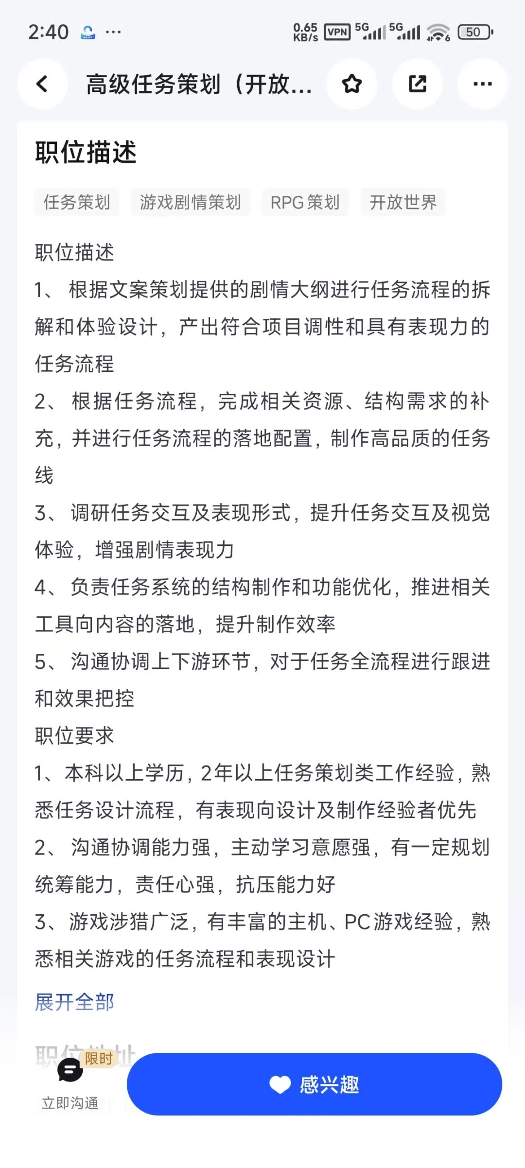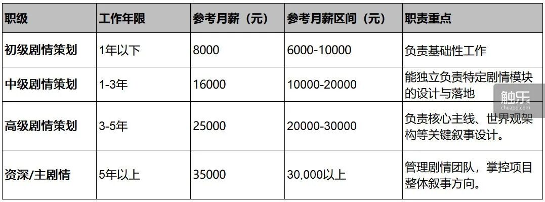 现在南方部分厂会将剧情落地的工作单独划分为一个工种,叫“任务策划”。毕竟故事创作和任务系统逻辑之间存在如文理科一样的鸿沟,所以这个工种可以让专修文案的策划适度摆脱配置执行工作的压力。