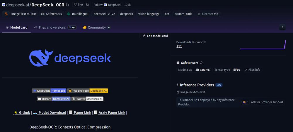 目前,这一模型已在Hugging Face上开源,而介绍DeepSeek-OCR模型技术细节与背后理论的技术报告也已同步公开。DeepSeek-OCR团队称,他们此番开源的模型是对一种潜在解决方案的初步探索,即利用视觉模态作为文本信息的高效压缩媒介。