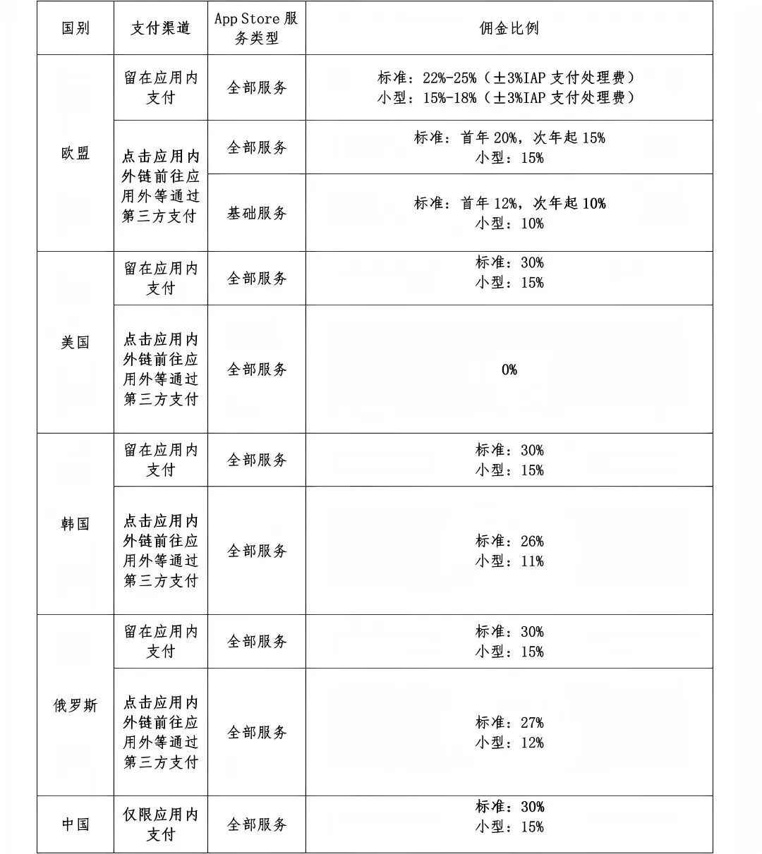 图片:苹果支付渠道以及佣金政策对比(转自王琼飞律师举报信)