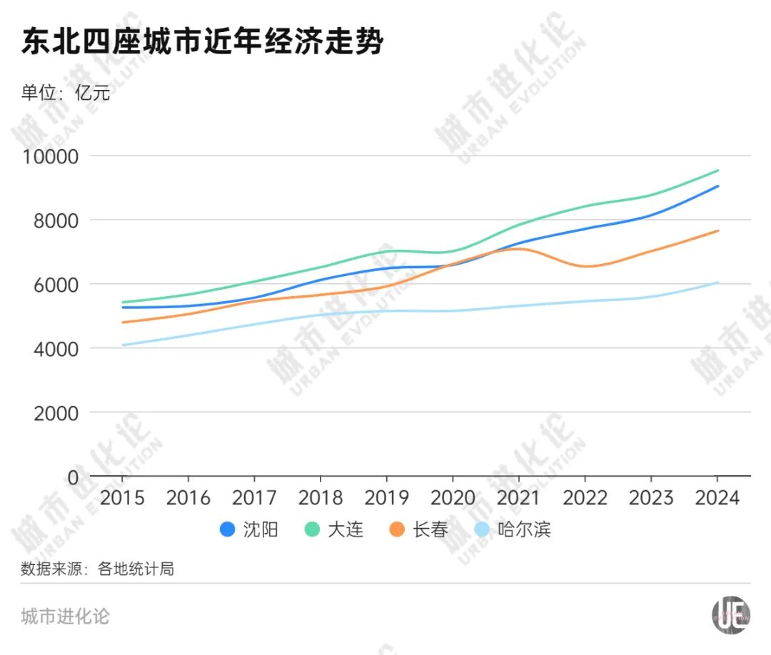 在东北地区横向对比,2024年,大连、沈阳GDP双双突破9000亿元,其中大连达到9500亿元以上,今年有望挑战万亿大关。而长春GDP仍在7000多亿元的体量,这样的规模差距,直接影响了其在全国城市格局中的话语权和资源调配能力。