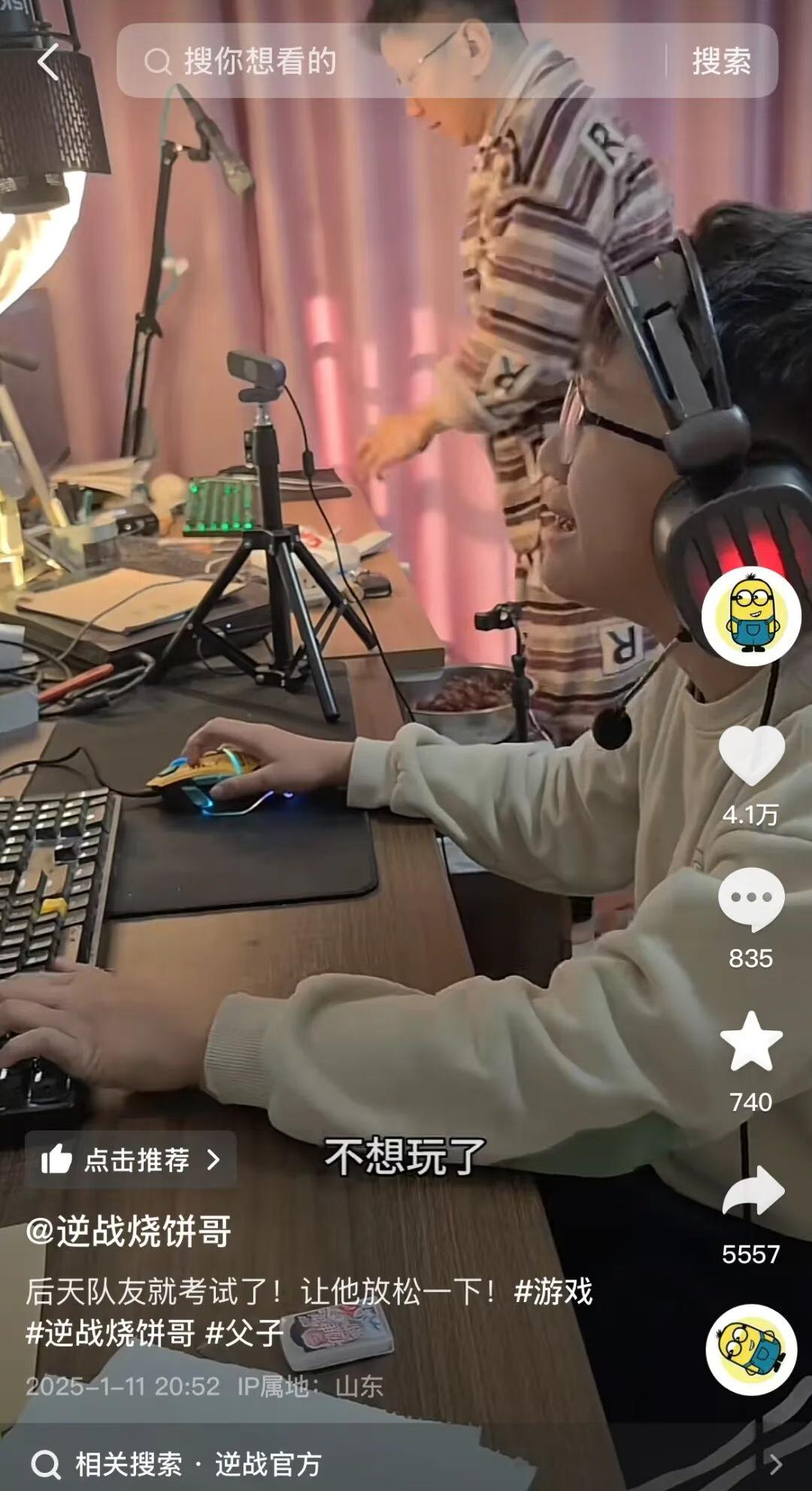 或许最能让彼此理解的成功案例,就是学习逆战烧饼哥了,天天监督孩子上分打游戏,逆向刺激孩子想学习了,这哪里是打“逆战”,而是“逆学”。