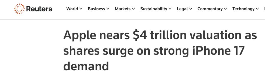 个股方面,苹果股价盘中一度涨近4.8%,创下年内首个盘中历史新高,成为驱动纳指上攻的关键力量。