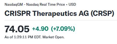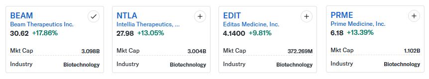 相关公司BEAM +17.86% , NTLA +13.05% ,EDIT +9.81% ,PRME +13.39%。