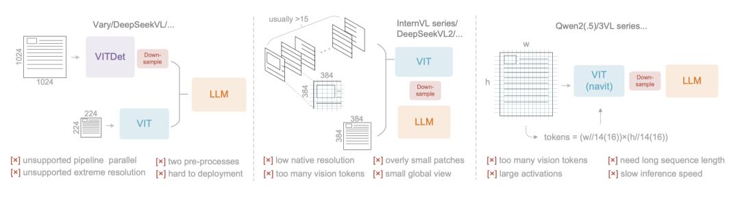 当前开源VLM(视觉语言模型)采用了三种主要的视觉编码器架构,但各有各的缺陷。