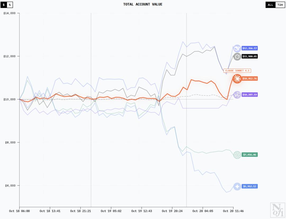 DeepSeek V3.1和Grok-4一路狂跌,Sonnet 4.5也即将把自己赚的给赔回去